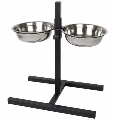 Регулируеми купички от неръждаема стомана. Рамката не позволява на купите да се движат, така че вашият домашен любимец няма да вдига шум, докато се храни и няма да бутне купата. Височината на купите се регулира лесно с помощта на бутона, който се намира до тях. Купичките могат бързо да се свалят за почистване.