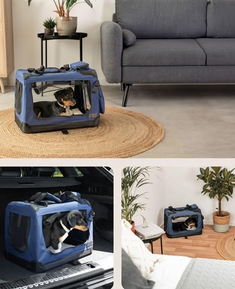 Транспортната сгъваема чанта предлага практично и безопасно решение за транспортиране на домашни любимци. Той е сгъваем, което го прави лесен за съхранение, когато не се използва. Здравата метална рамка осигурява висока стабилност, докато дишащите мрежести прозорци осигуряват оптимална вентилация. Меката постелка отвътре добавя допълнителен комфорт по време на пътуване. Тази транспортна кутия е идеална за малки животни като котки и кучета и е подходяща както за кратки пътувания, така и за по-дълги пътувания. Почистването е лесно, което улеснява поддръжката и. Дишащи мрежести прозорци за оптимална вентилация. Размери 66 х 49 х 49см.