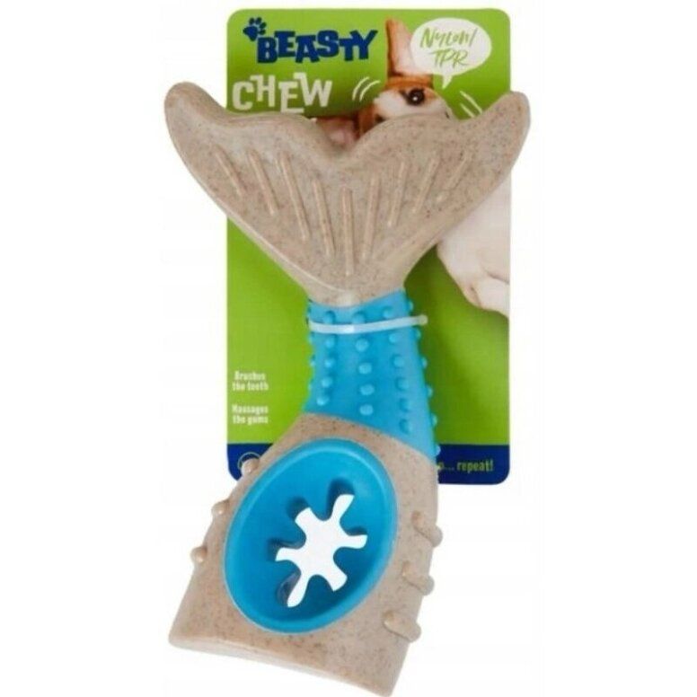 Играчка за кучета под формата на рибена опашка. Полезна за зъбите на вашите домашни любимци.