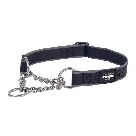 Този модел съчетава иновативната водоустойчива технология на серията Amphibian с функционалността на полузадушаващия нашийник, което го прави идеален избор за обучение и контрол при мокри и кални условия. Rogz Amphibian Half-Check е професионален инструмент за стопани, които търсят максимален контрол и нулева поддръжка. Той е незаменим за кучета, които обичат водата, но същевременно имат нужда от по-строга корекция по време на разходка. Подходящ e за ередни и големи енергични породи, обучение на кучета, които дърпат, и активни разходки край водни басейни.
