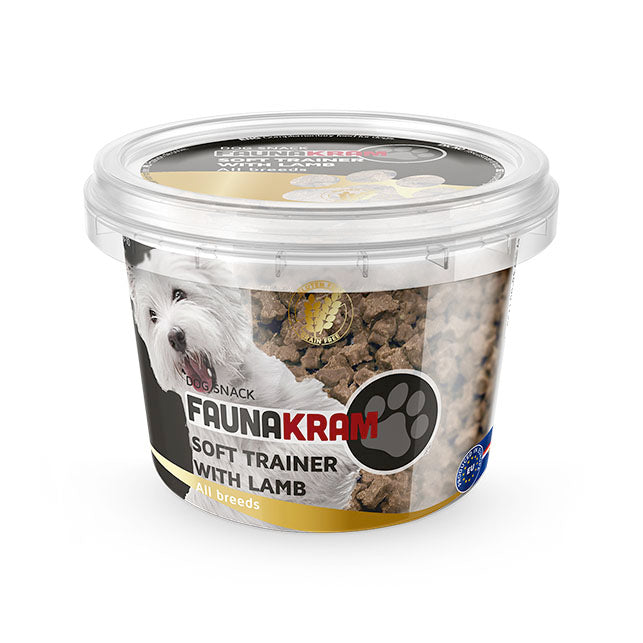 FAUNAKRAM Soft Trainer с агнешко представлява отличен избор за всички собственици на кучета, които желаят да обучават питомците си с помощта на качествени лакомства. Освен вкусно, хранителното съдържание е подходящо за общото здраве на кучето.