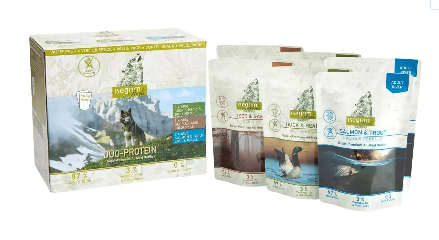 ISEGRIM паучове за куче мултипак дуопротеин 6х410гр